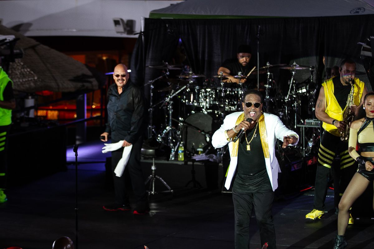 Back on ship, after a little shopping at the port stores, it was time to relax, regroup and get ready for the night’s concerts. Charlie Wilson was on deck first, literally, as he was performing on the Lido Deck, the upper deck that is the home for outdoor concerts and at its other end, a site for parties because it has a pool and hot tub. Wilson, the former lead singer of the Gap Band, is justifiably known for his high-energy shows and he did not disappoint.